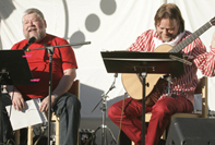 Sedan blev det musik i solskenet. Egil sjöng egna låtar tillsammans